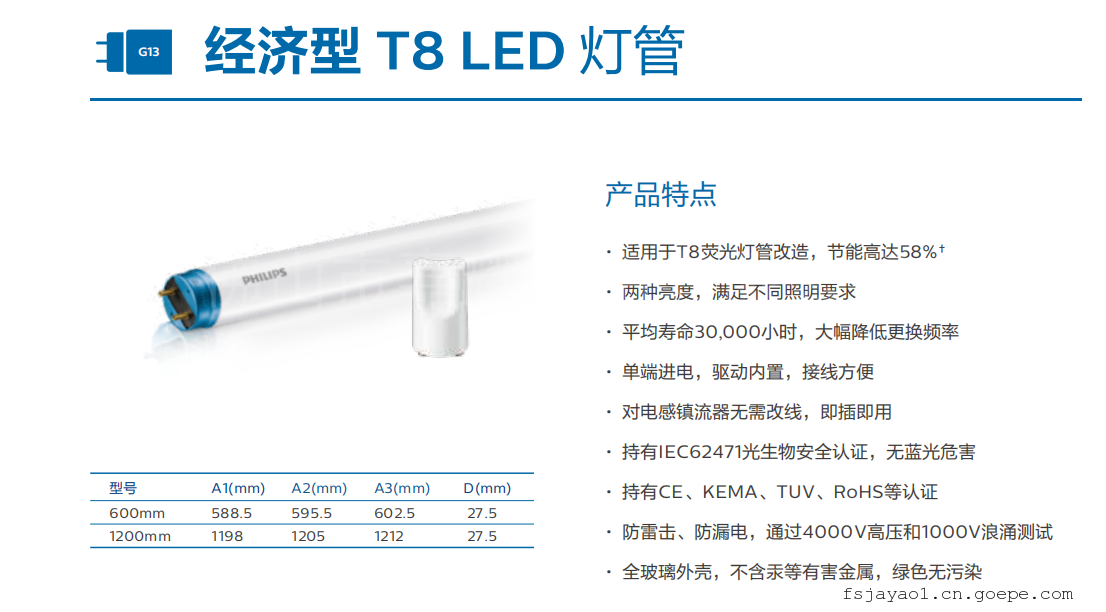 藍色頭LED燈管適用于T8熒光燈管改造,節能高達55%