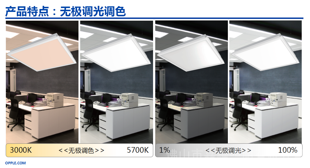 歐普照明總代理無線藍牙控制LED調(diào)色溫/調(diào)光燈盤寫字樓專用集成吊頂平板燈
