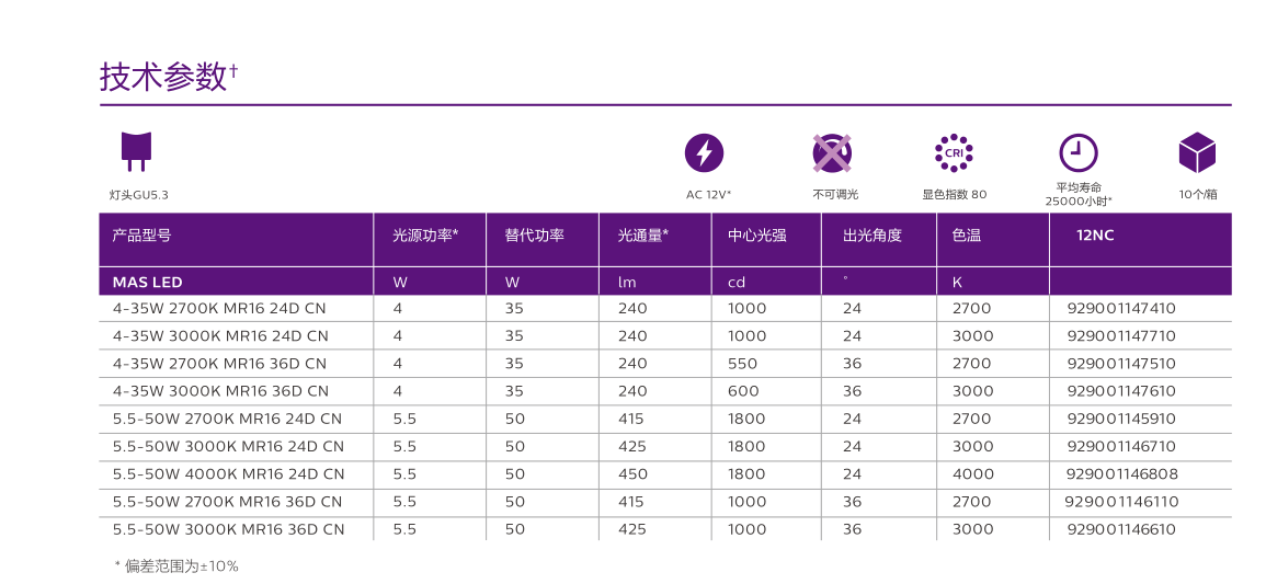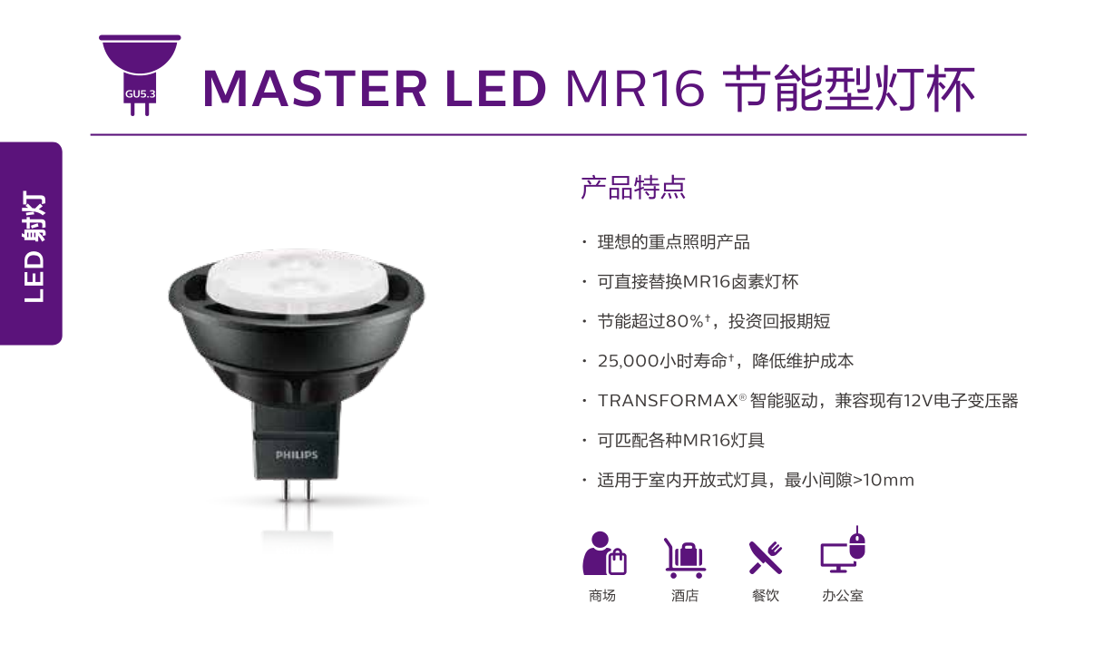 飛利浦MR16 5.5W GU5.3燈杯可直接替換MR16鹵素?zé)舯漠a(chǎn)品特點
