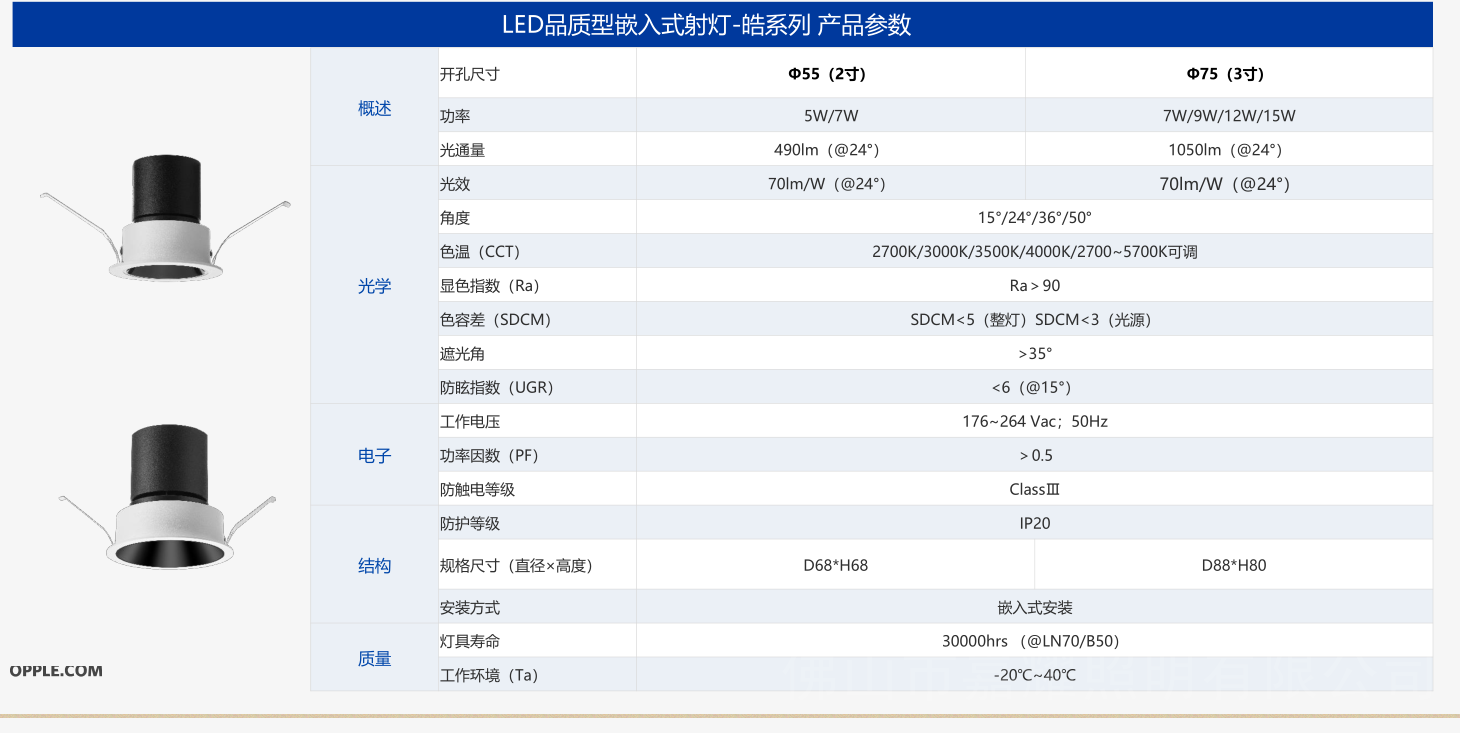 OPPLE歐普照明皓系列LED品質(zhì)型嵌入式射燈酒店射燈