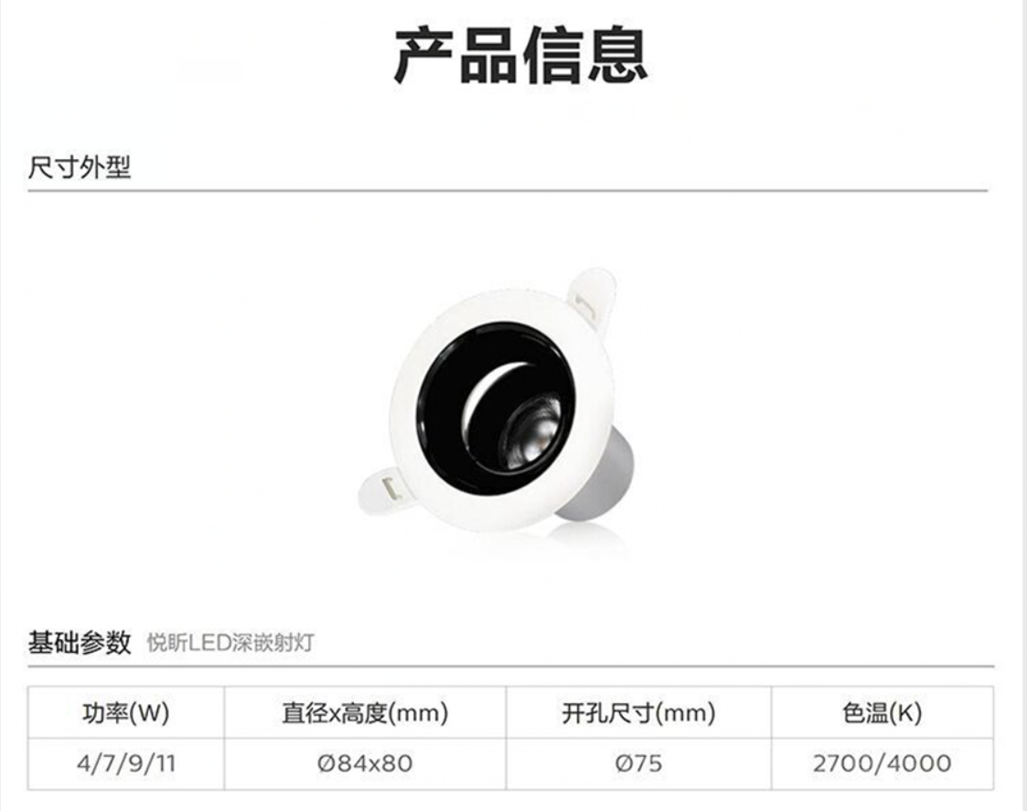 PHILPS飛利浦悅昕LED深嵌式LED射燈開孔尺寸φ75MM