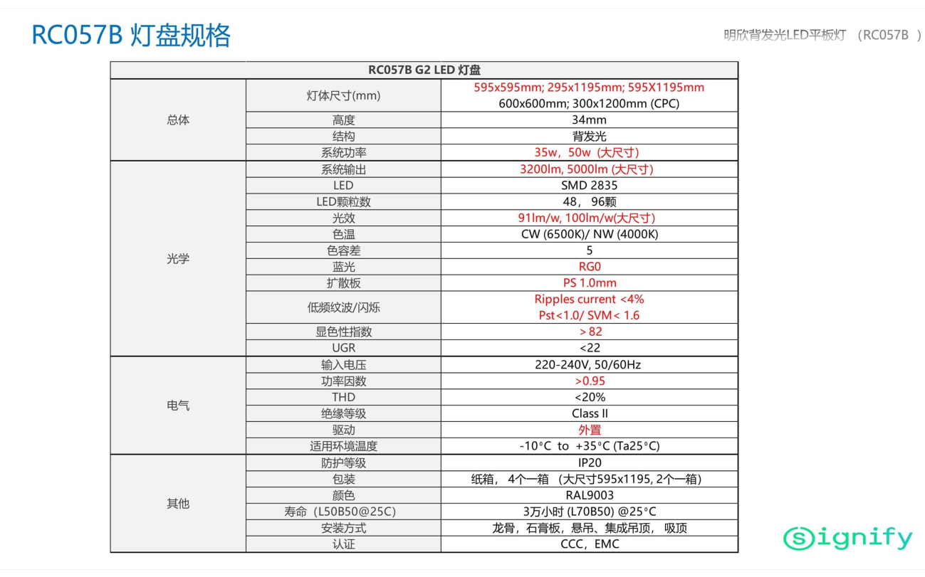 PHILPS飛利浦LED格柵燈燈盤辦公室嵌入式平板RC057B