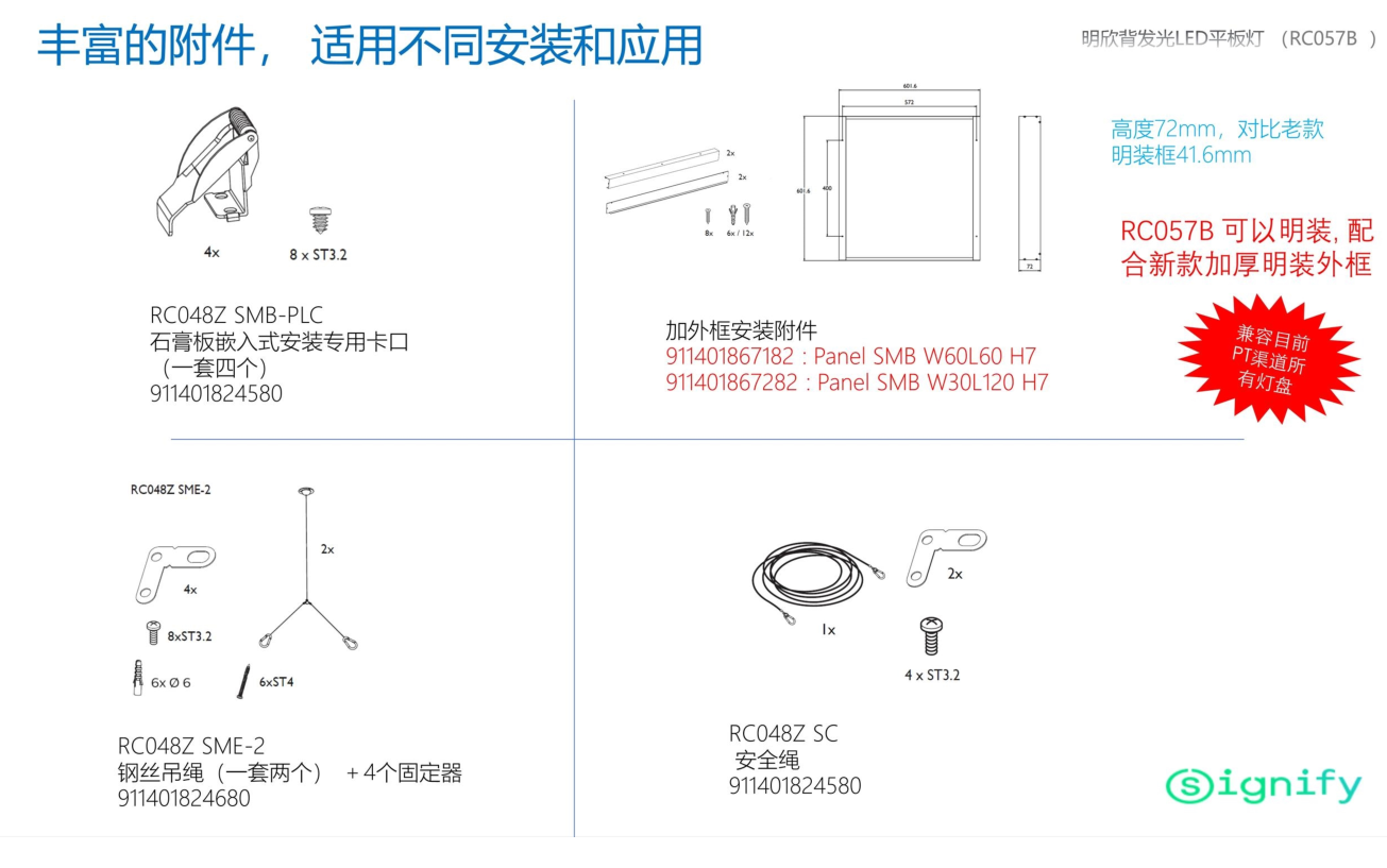 • 靈活應用: 配合豐富附件,支持所有五種安裝方式--龍骨、石膏板、集成吊頂、 懸吊、吸頂