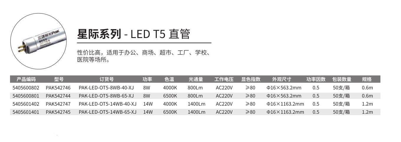 三雄極光T5燈管壽命長達(dá) 3 萬小時,光衰小,有效減少后期維護(hù)費用;三雄極光星際系列T5 LED燈管的型號和訂貨編碼: