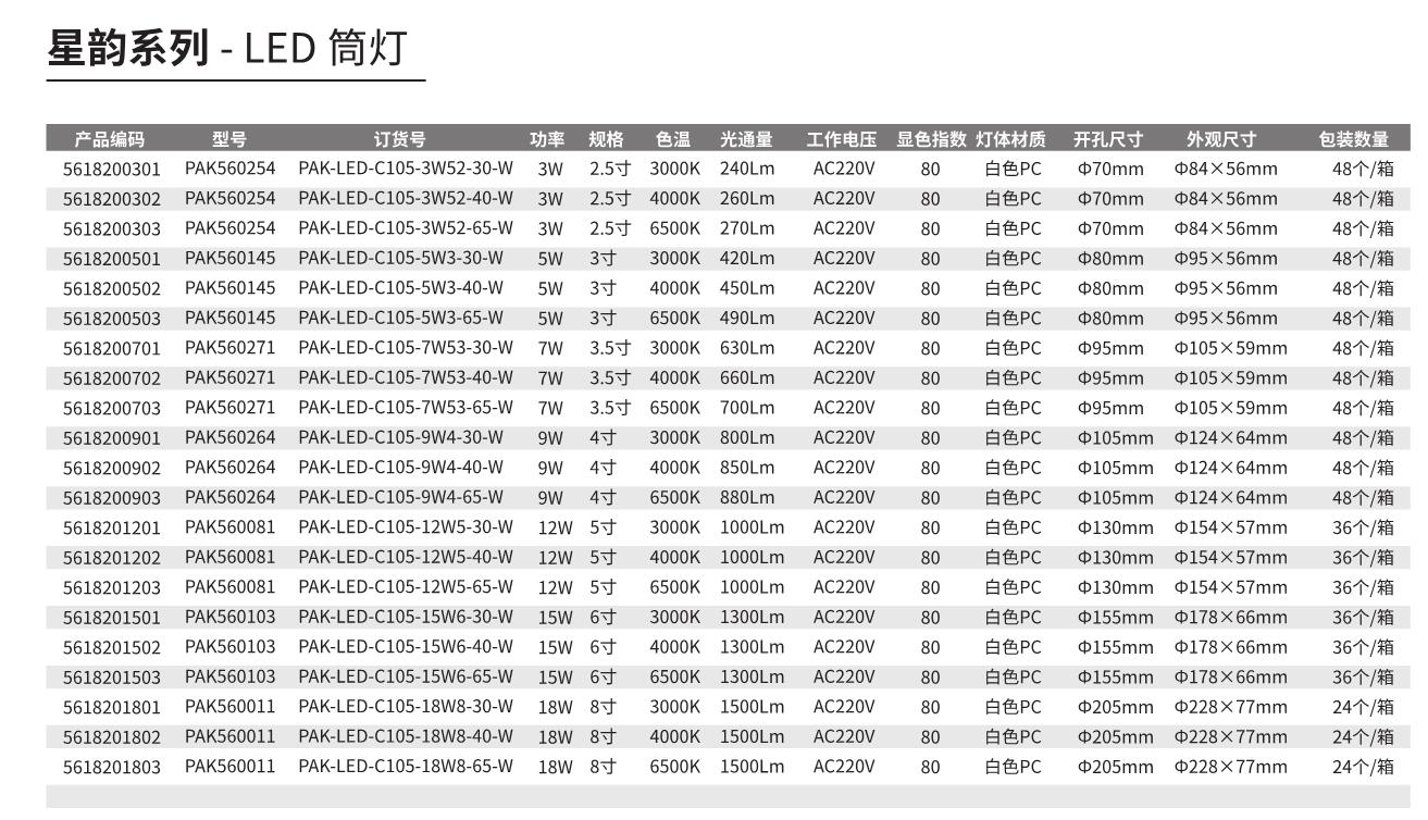 詳細信息| 詢價留言品牌:三雄極光 型號:嵌入式筒燈 輸入電壓:220V led顆數:集成 色溫:3000K/4000K/6500K K 光通量:240-1500 lm 類型:嵌入式筒燈 顯色指數:80 壽命:30000 h 可否調光:不可以 發光角度:90 ° 封裝工藝:獨立包裝 -