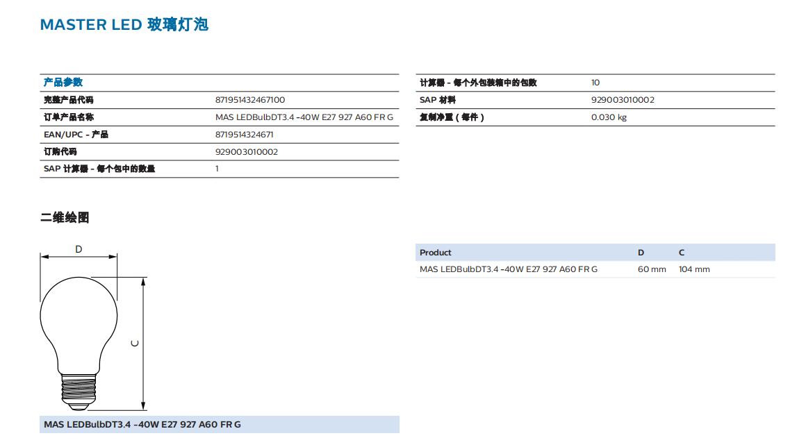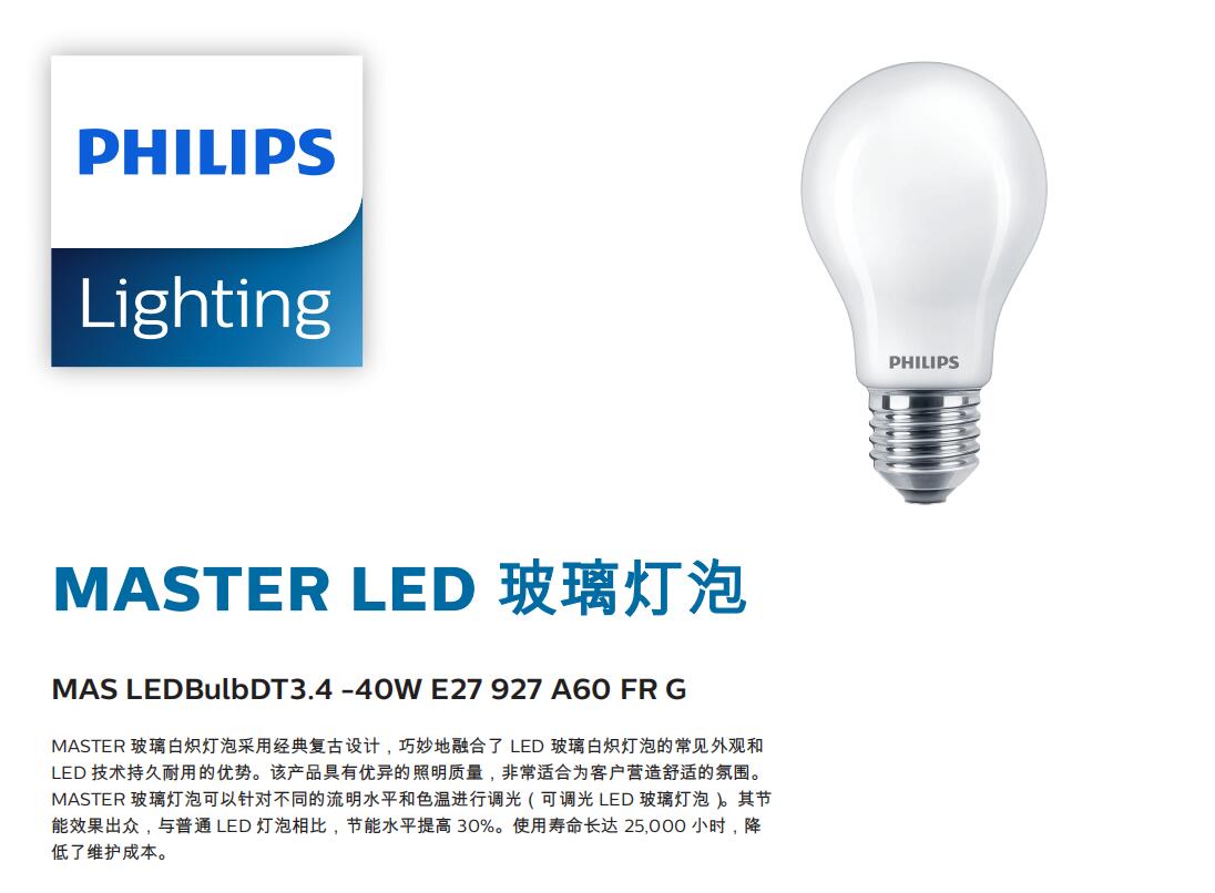 PHILIPS飛利浦MAS LEDBulbDT 3.4W/5.9W LED調(diào)光燈泡E27玻璃款球泡