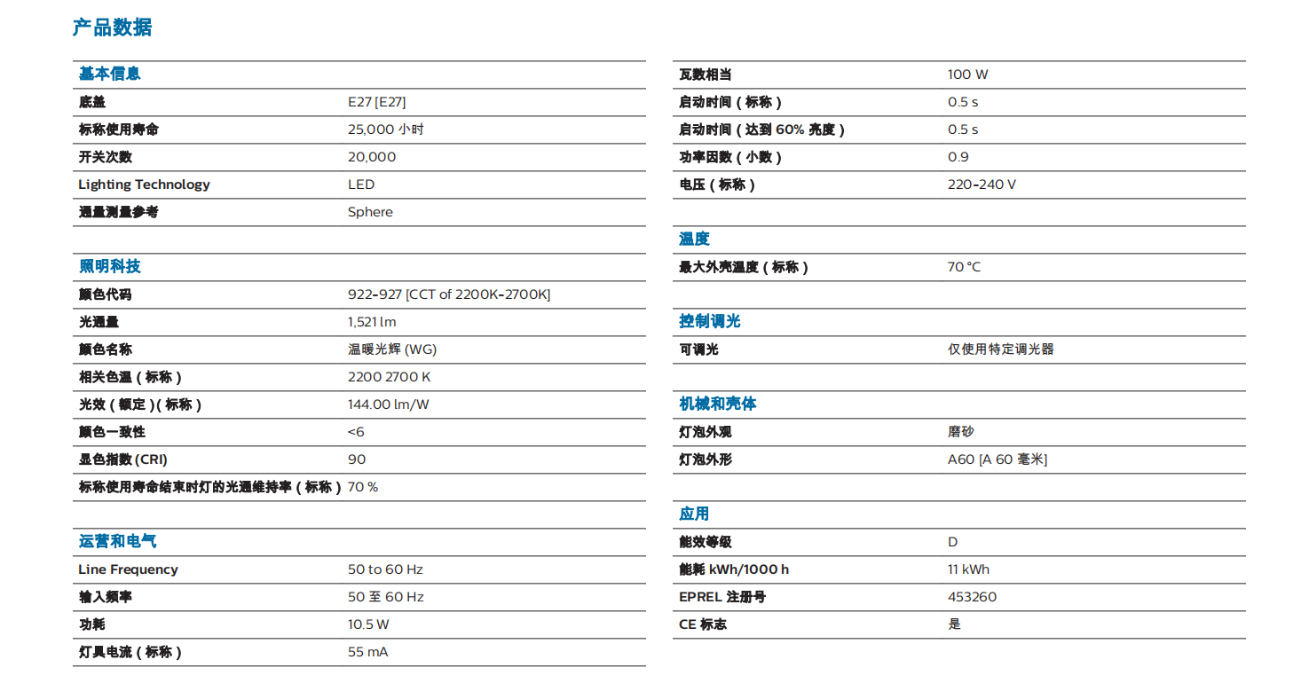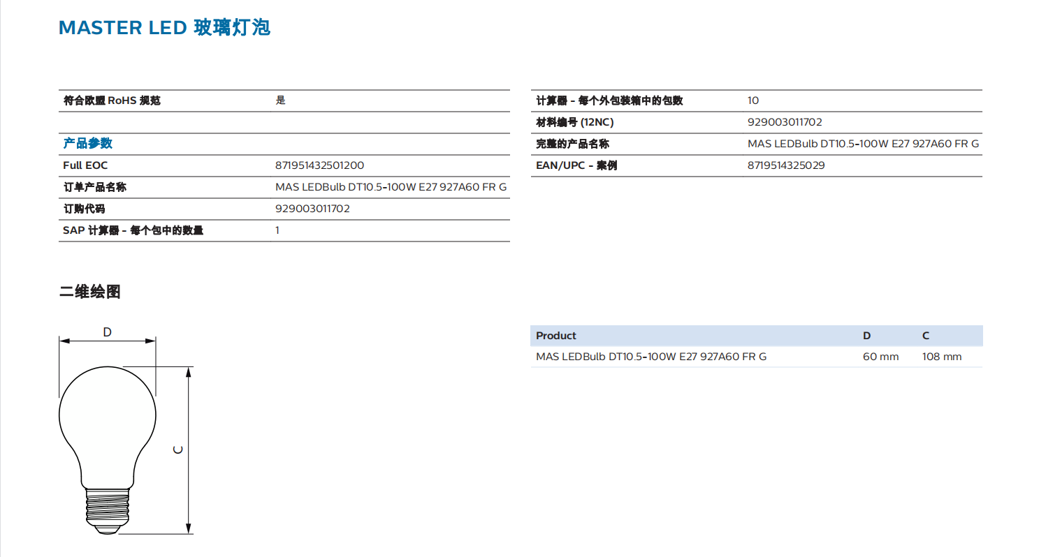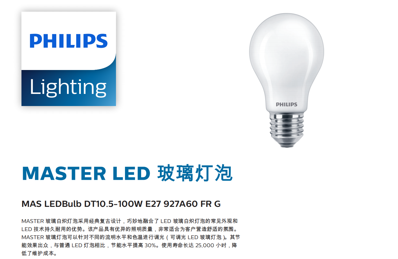 philips飛利浦MAS Bulb DT10.5-100W E27 927A60 FR G調(diào)光燈泡LED