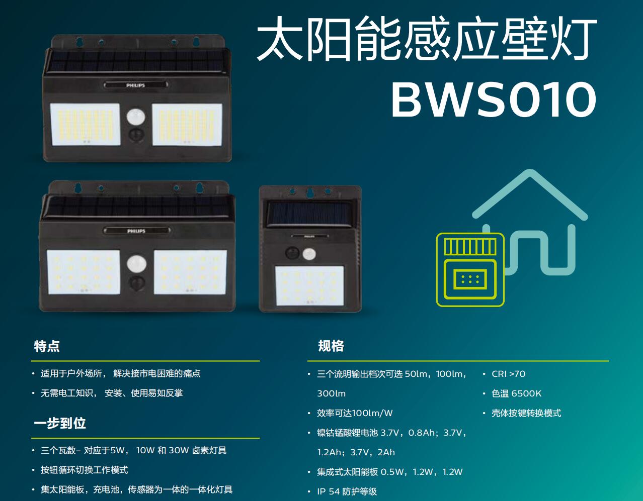PHILIPS飛利浦太陽(yáng)能LED感應(yīng)壁燈BWS010防水庭院燈IP54