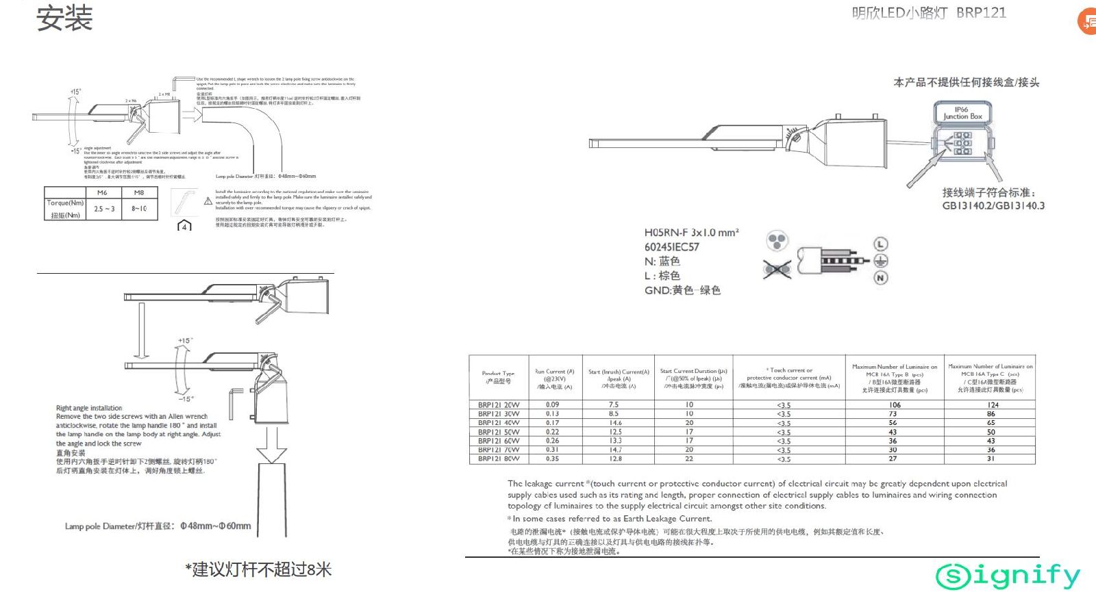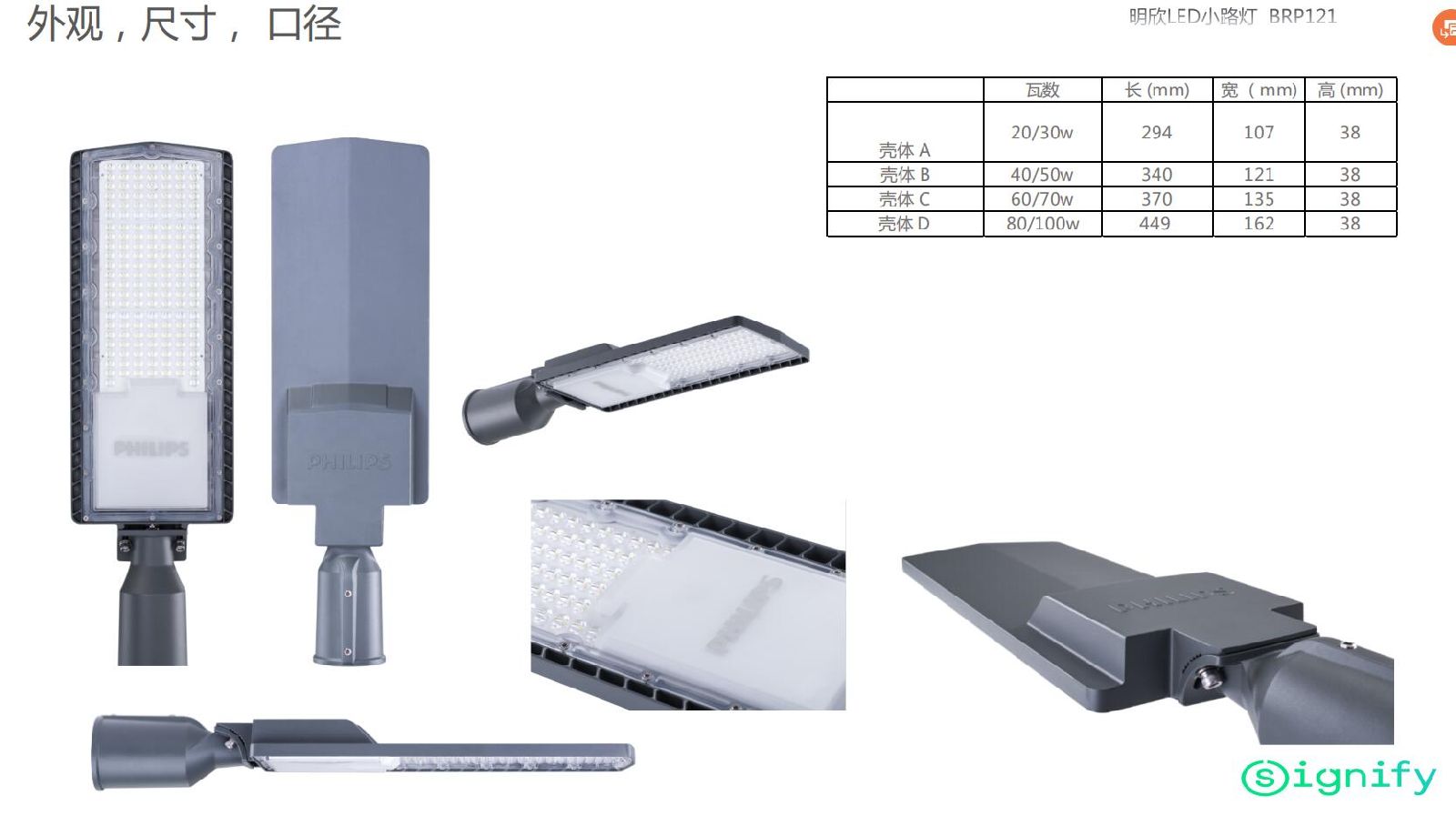 PHILIPS 飛利浦品牌花園小區(qū)LED路燈 明欣BRP121立桿裝 IP65戶外防水100W