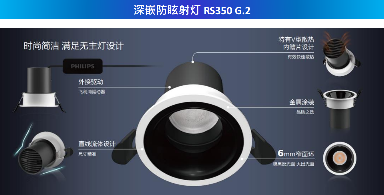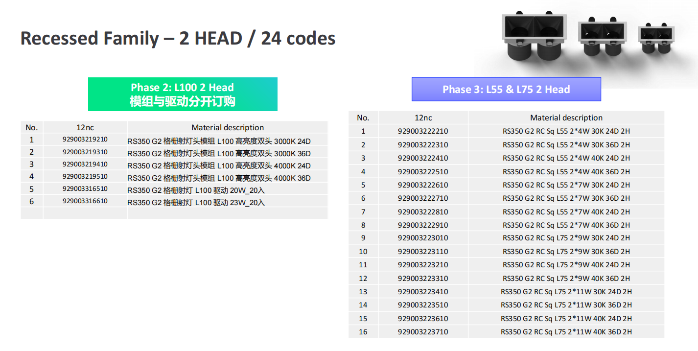飛利浦照明深嵌式COB雙頭格柵射燈/RS350 G2 20W方形天花燈CRI90