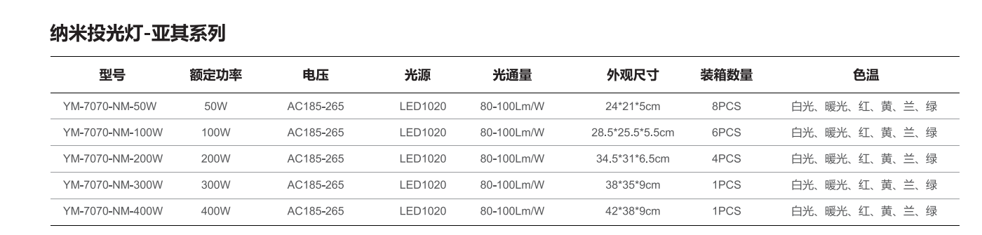 亞明LED投光燈亞其7070投光燈納米系列400W IP66